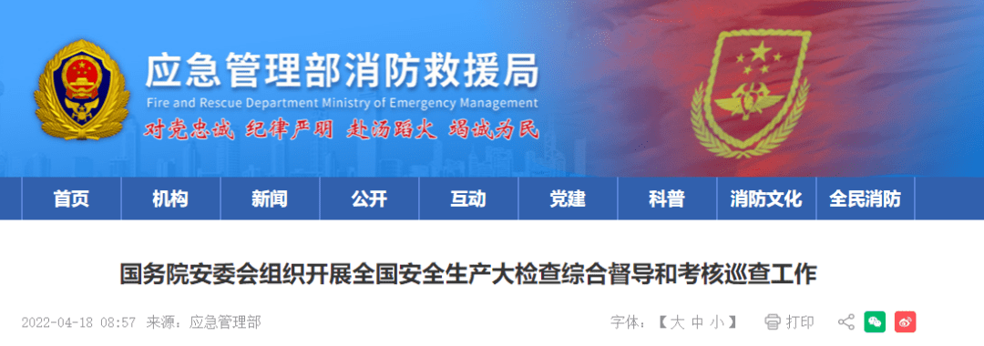 根據黨中央、國務院決策部署和全國安全生產大檢查工作安排,自4月中旬至6月底,國務院安委會組織16個綜合檢查組,對31個省(自治區、直轄市)和新疆生產建設兵團安全生產大檢查情況進行綜合督導,并同步開展國務院2021年度省級政府安全生產和消防工作考核巡查及國務院安委會成員單位安全生產工作考核。