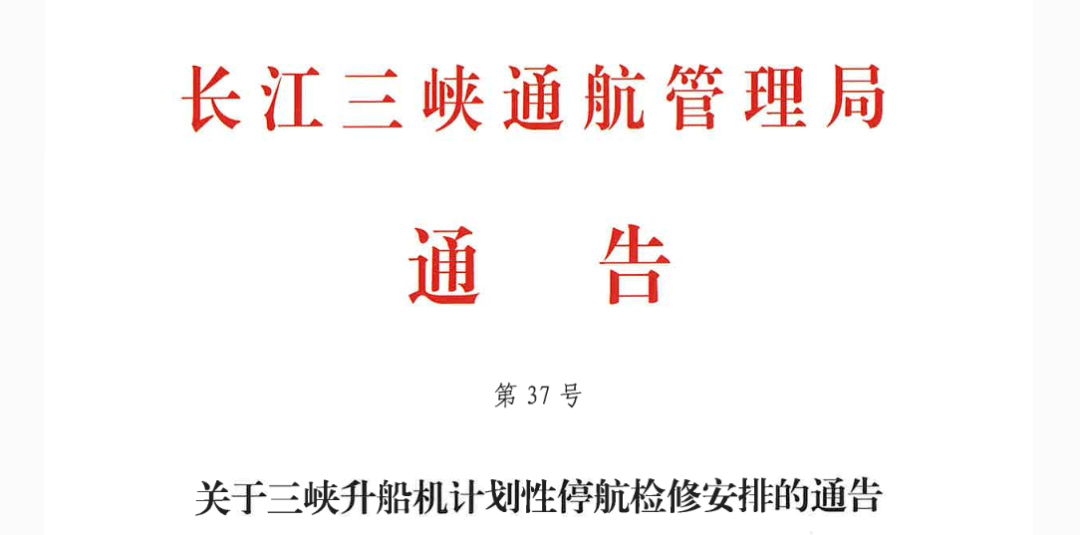 根據《長航局關于2022年三峽升船機計劃性停航檢修有關事宜的批復》(長航函道〔2022〕251號)有關要求,現將2022年三峽升船機計劃性停航檢修安排通告如下: